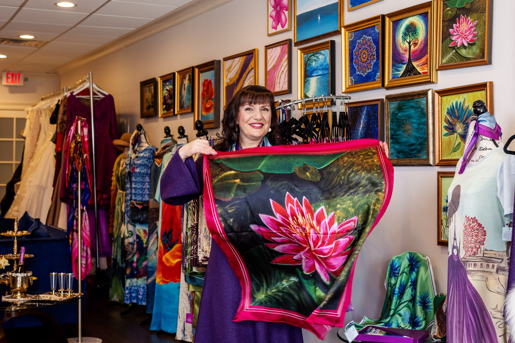 Imagine wearing a painting, lovingly created on canvas, then infused into 100% silk garments.