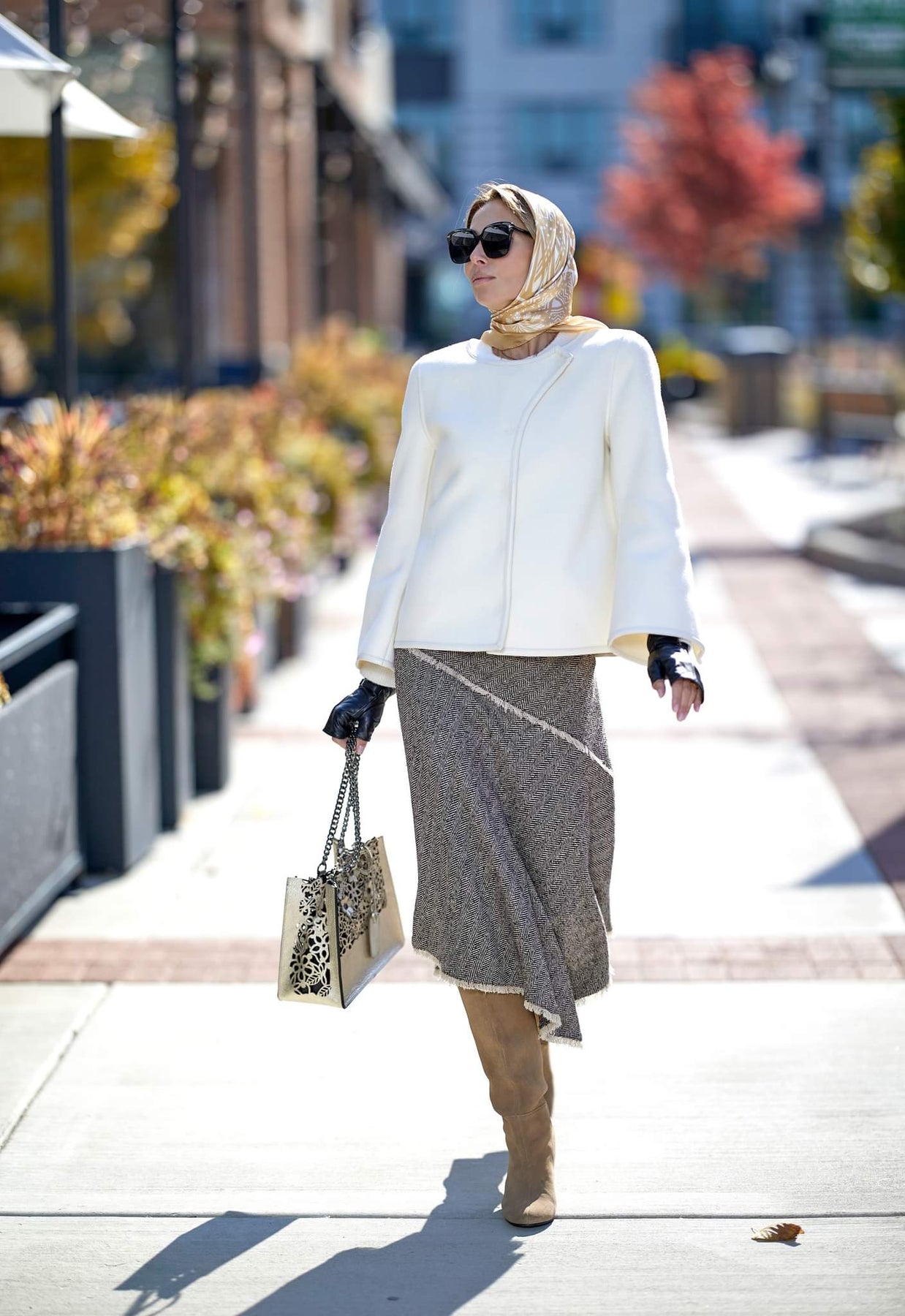Its neutral beige-white tones make it suitable for both everyday elegance and formal looks.
