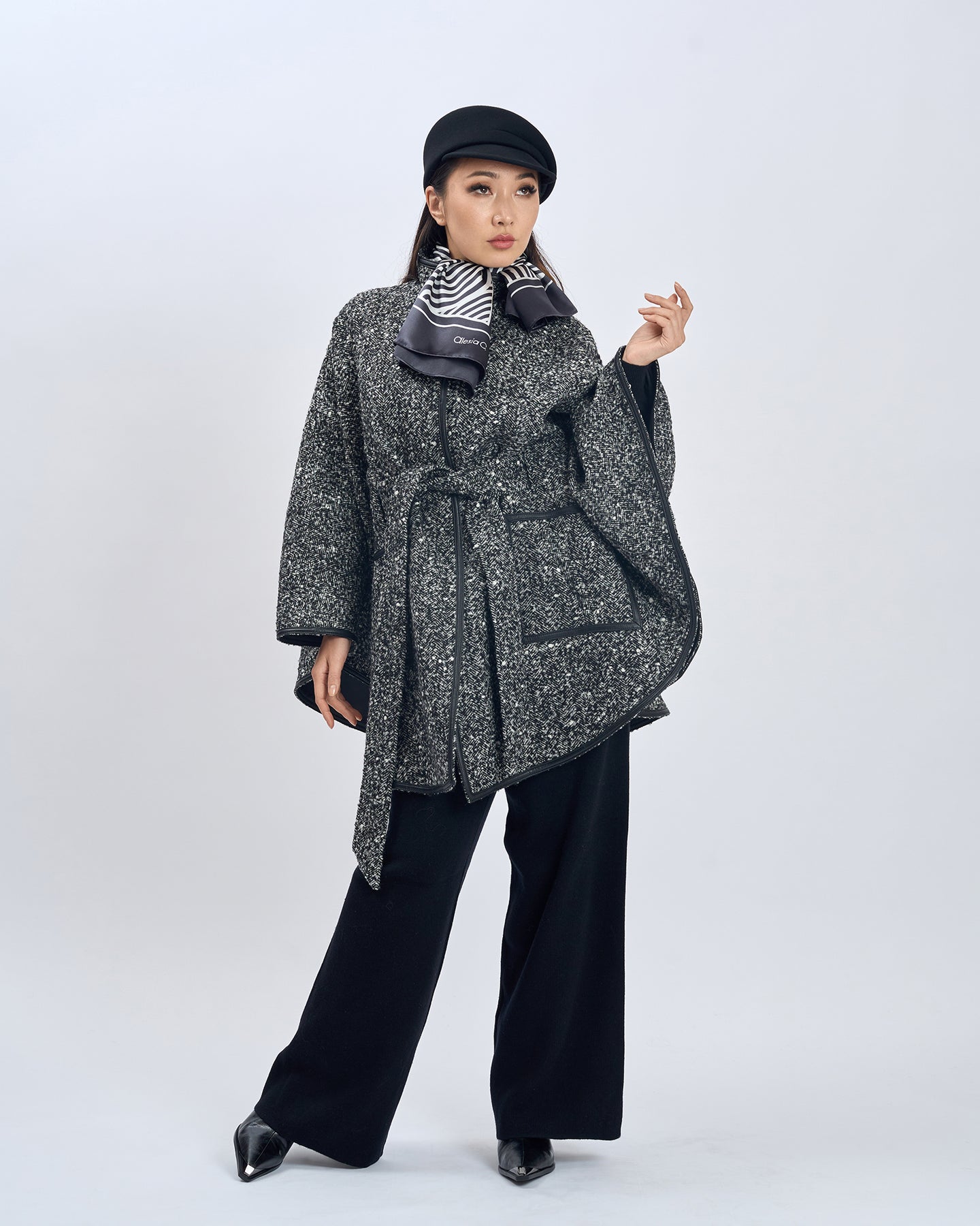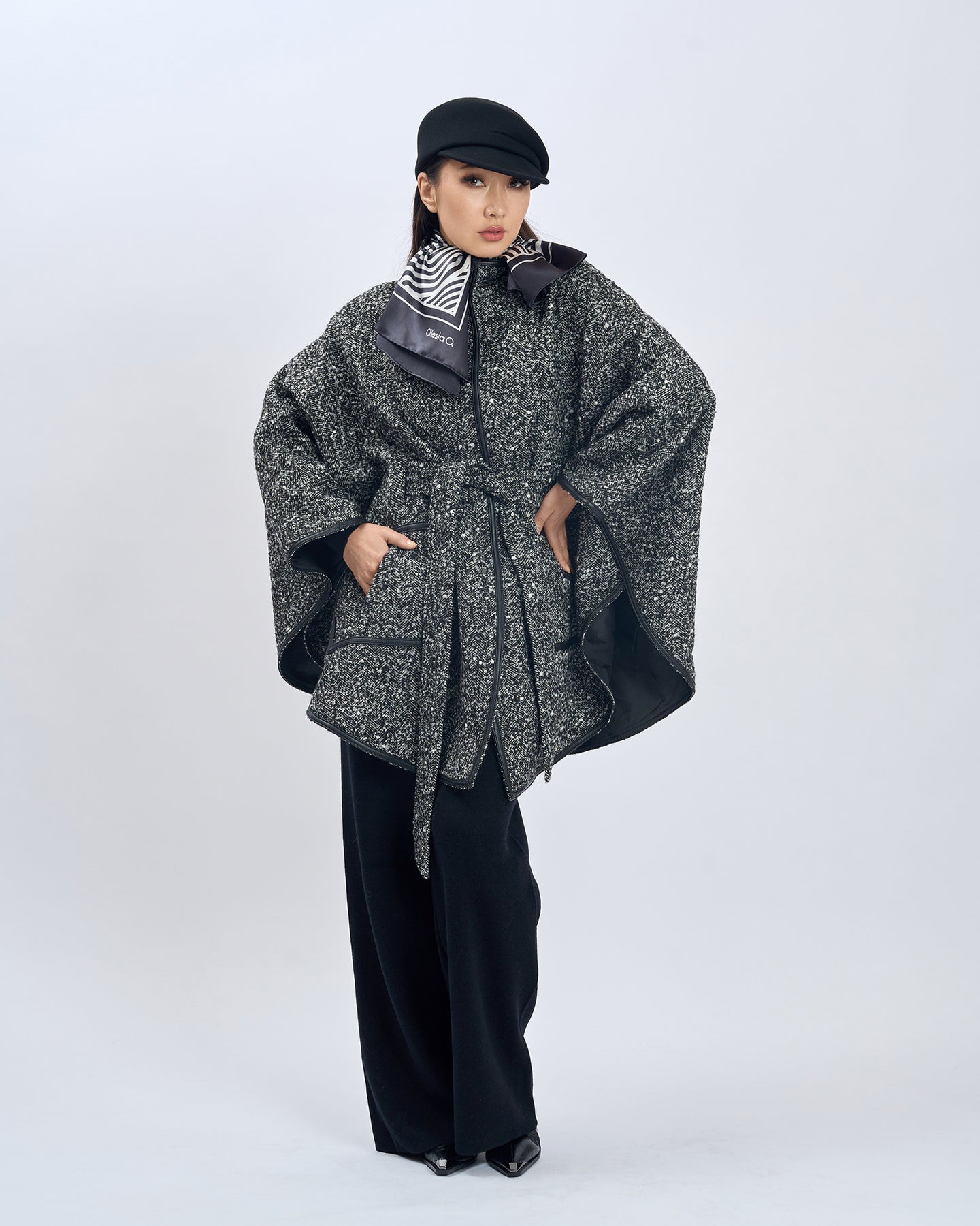 The SLIM DANCE Mandala Silk Square Scarf in Gray White from Alesia Chaika’s Mandala Collection blends modern minimalism with timeless artistry. Digitally printed from the designer’s original mandala artwork, this piece transforms luxury silk into wearable art.