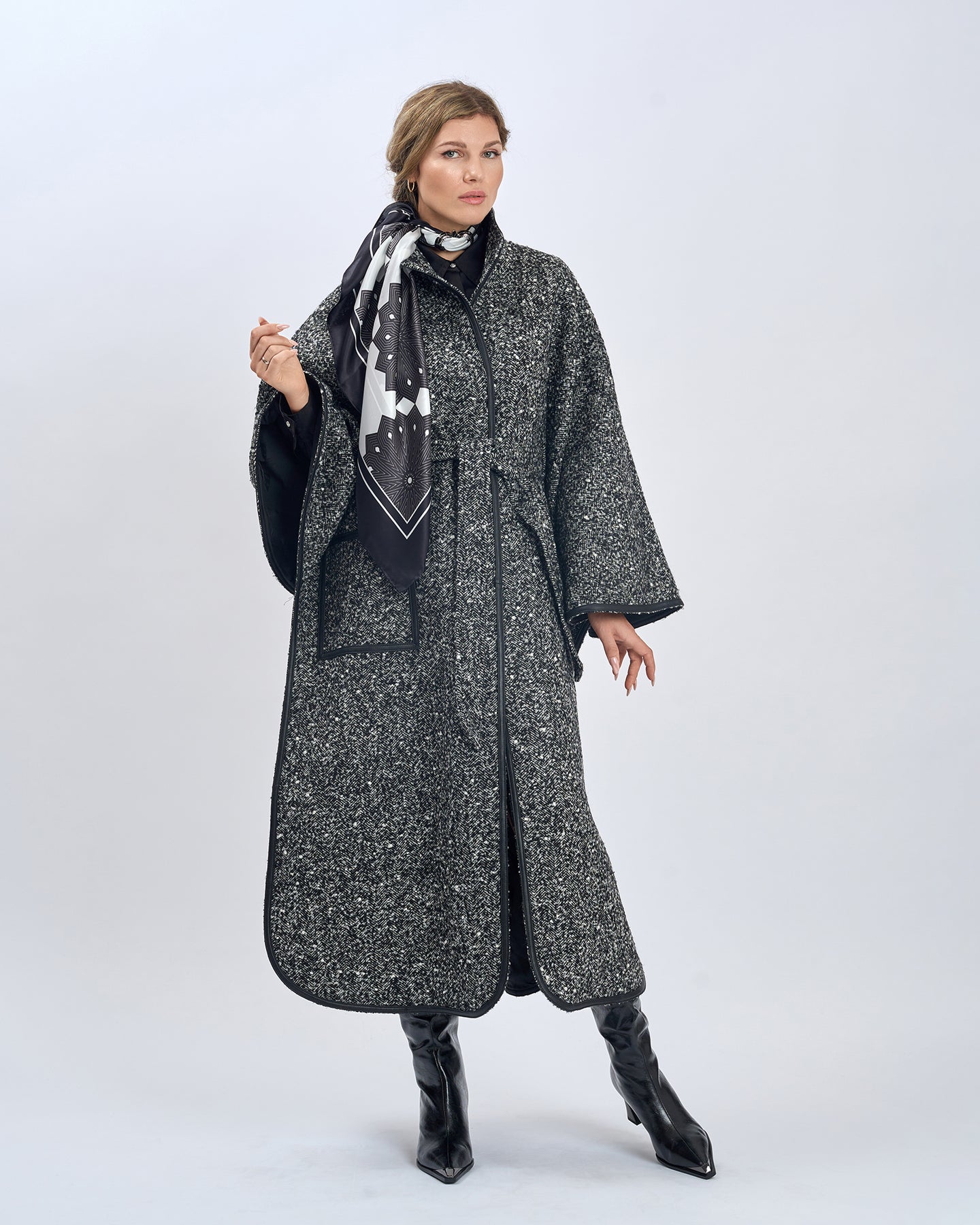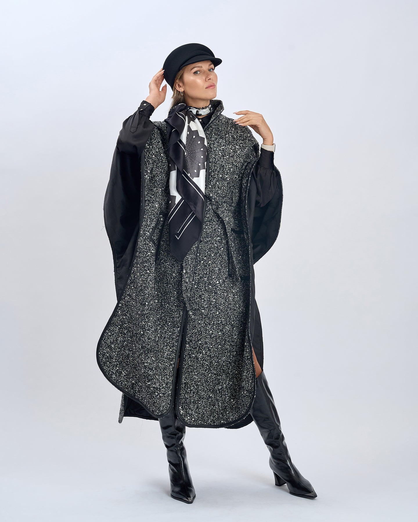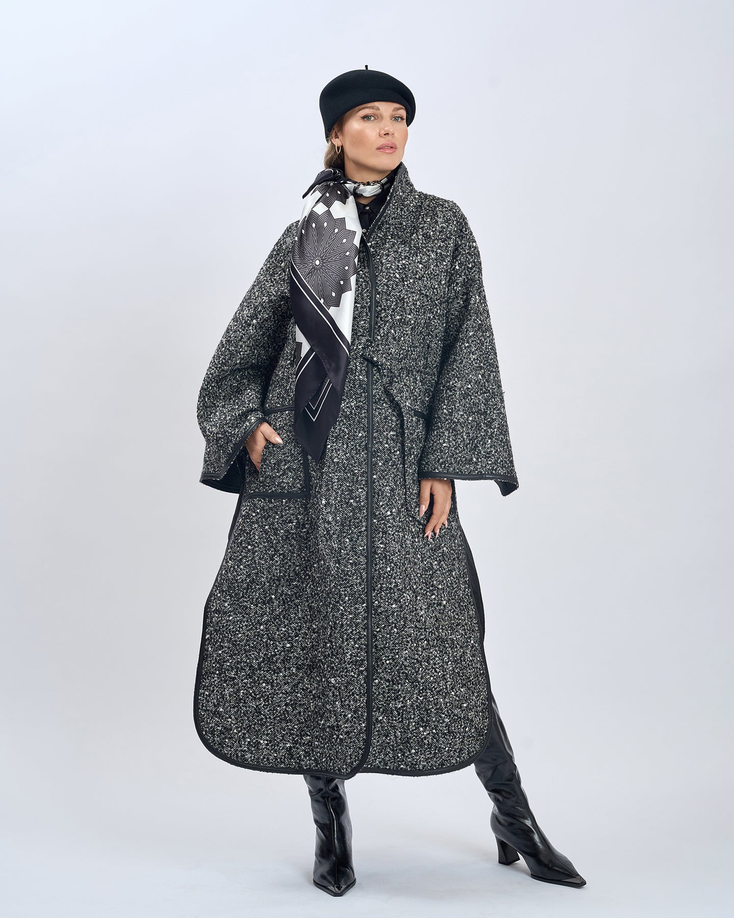 The UMBRELLAS RAIN Mandala Silk Scarf in Black and White from Alesia C.’s Wearable Art Collection is a timeless accessory that combines elegance with artistic expression. Featuring digitally printed mandala artwork based on designer Alesia Chaika’s original designs, this luxury scarf brings a sense of purity and sophistication to any outfit.